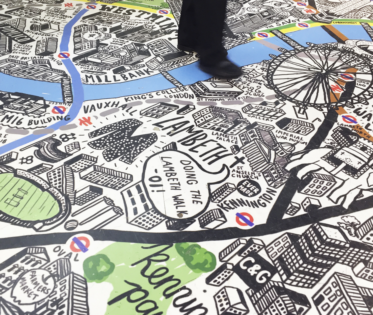 I was asked by Gatwick Airport if it would be possible to licence the Hand Drawn Map of London to be used as a large floor covering near the arrivals area. I was delighted with how it turned out!